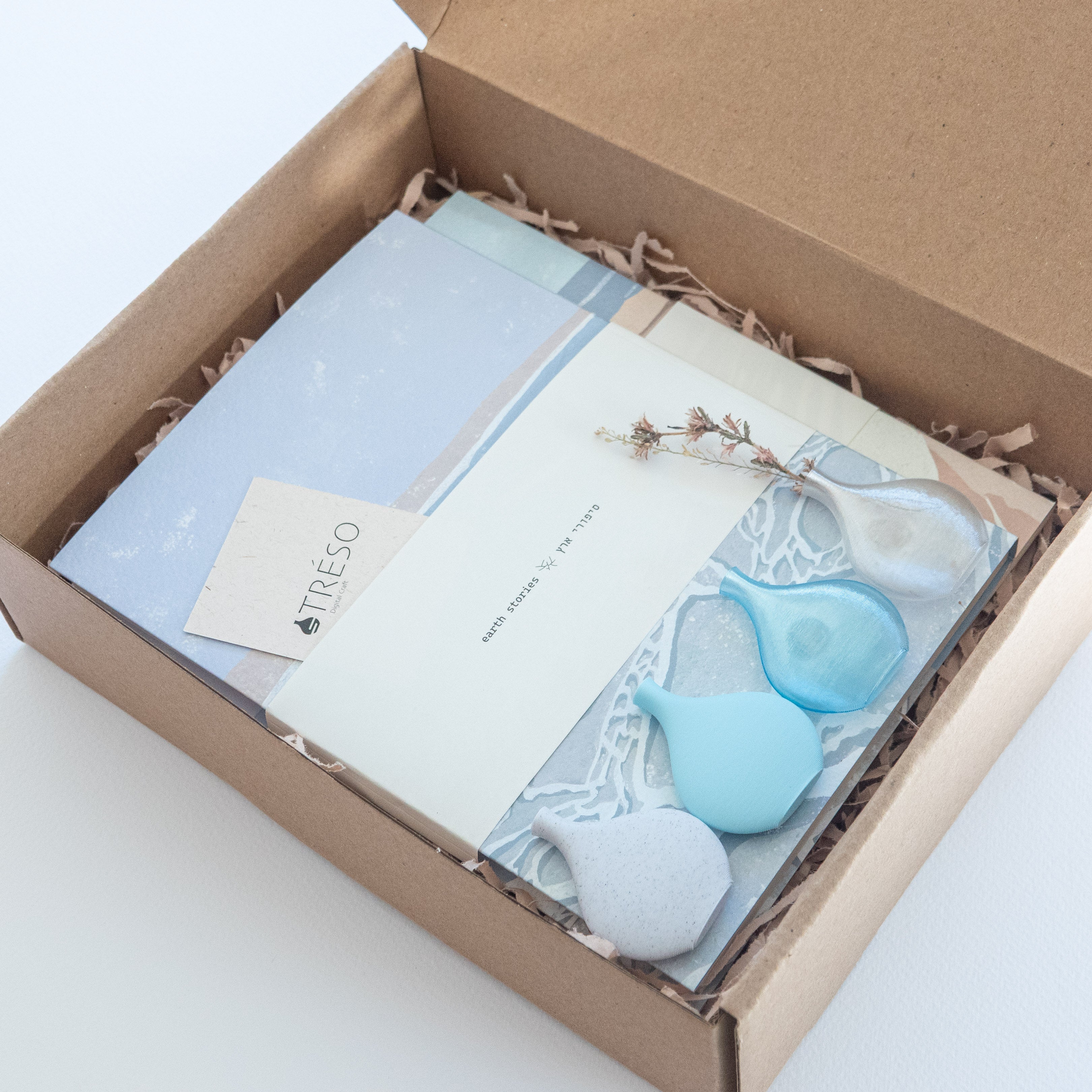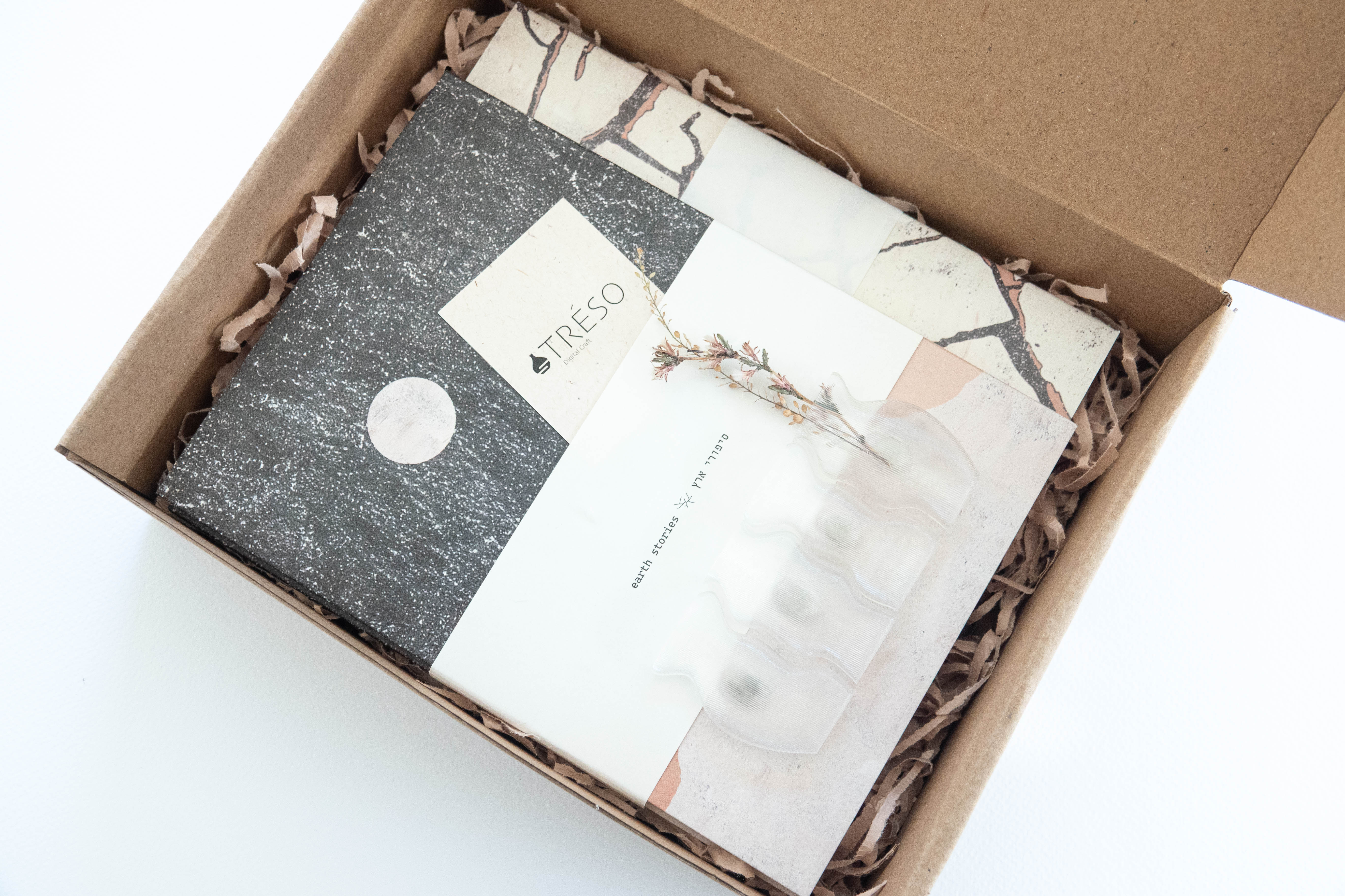 Together with ‘Earth Stories/TRÉSO‘ we curated special gift boxes that create a dialogue between unique stationary inspired by local landscapes and 3D printed sustainable design, merging colour, texture and form.